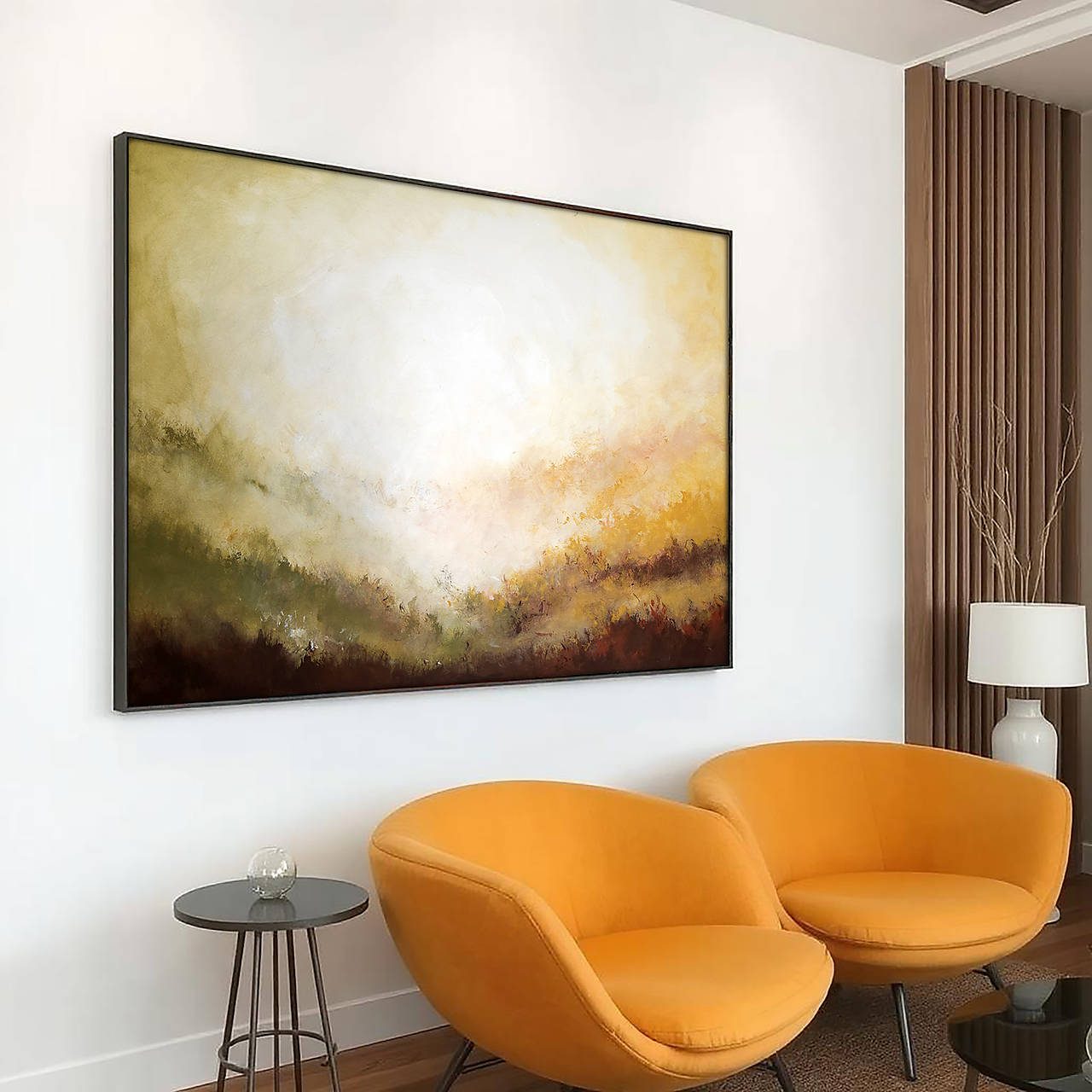 Obraz „Diaľky VI“ je maľba v jemnej prírodnej farebnosti v minimalistickom prevedení. Hodí sa do tradičnejších aj moderných interiérov.