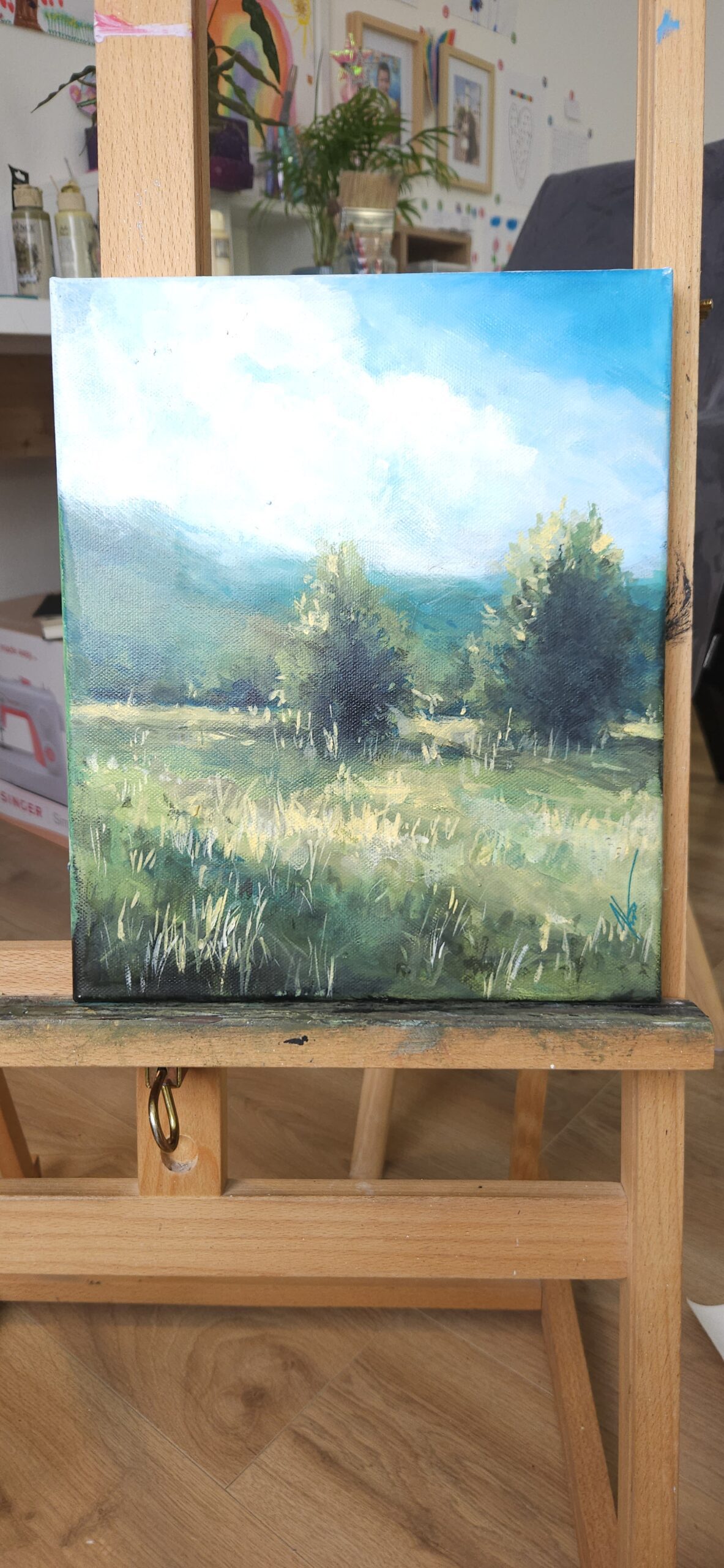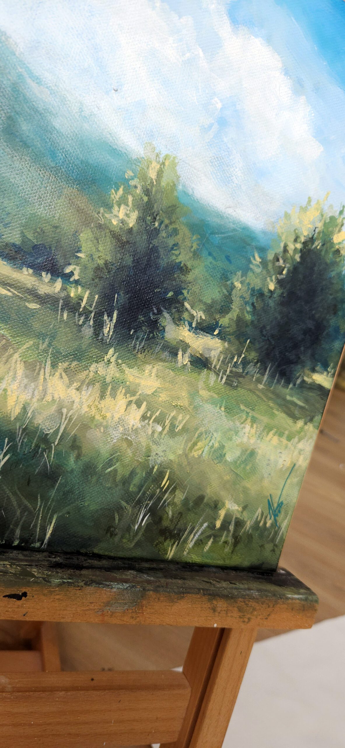 Maľba kvalitnými akrylovými umeleckými farbami na bavlnenom EKO plátne. Obraz posielame s kompletnou technickou úpravou, natiahnutý na blindráme (drevenej konštrukcii) z borovicového dreva.