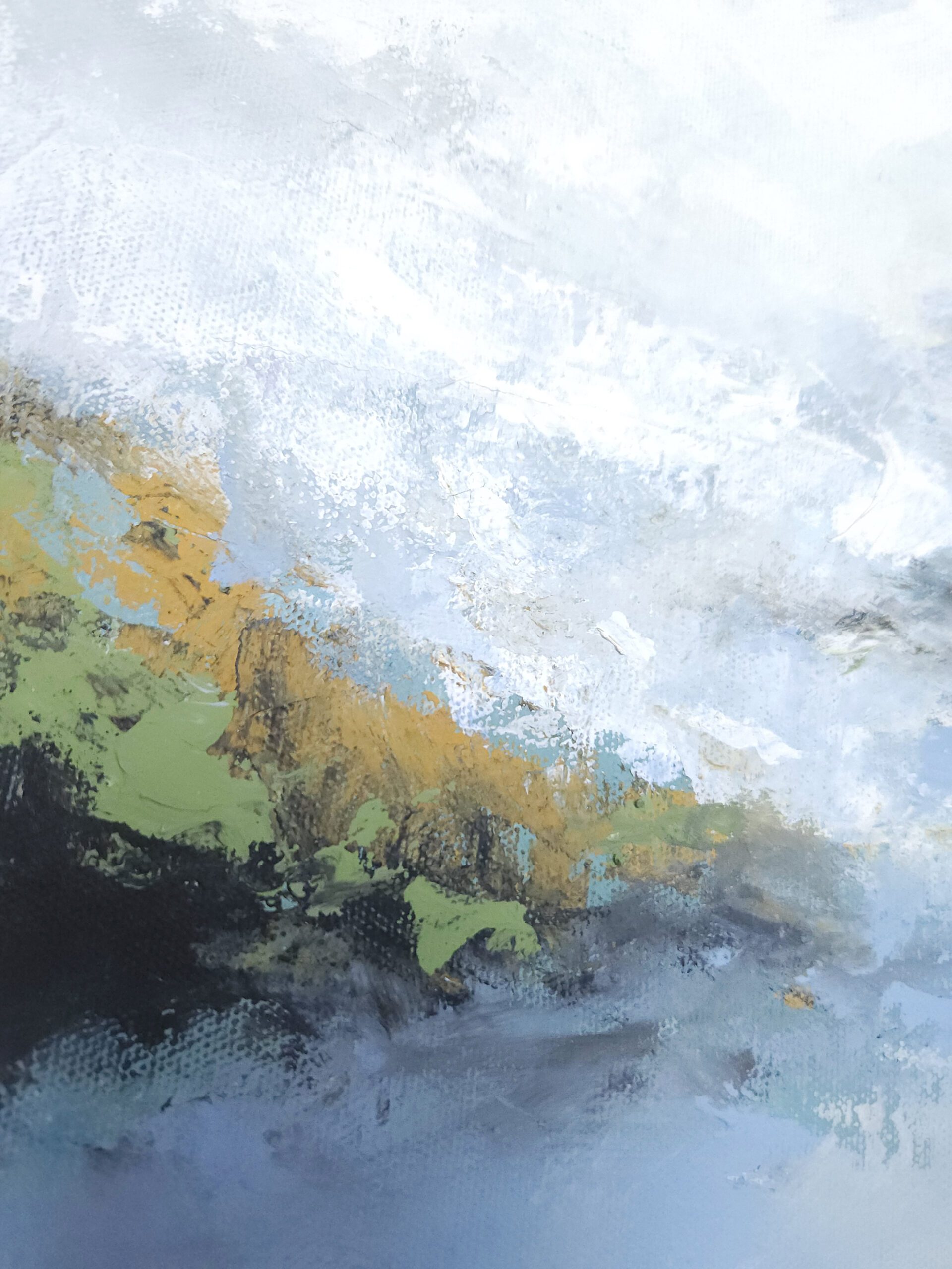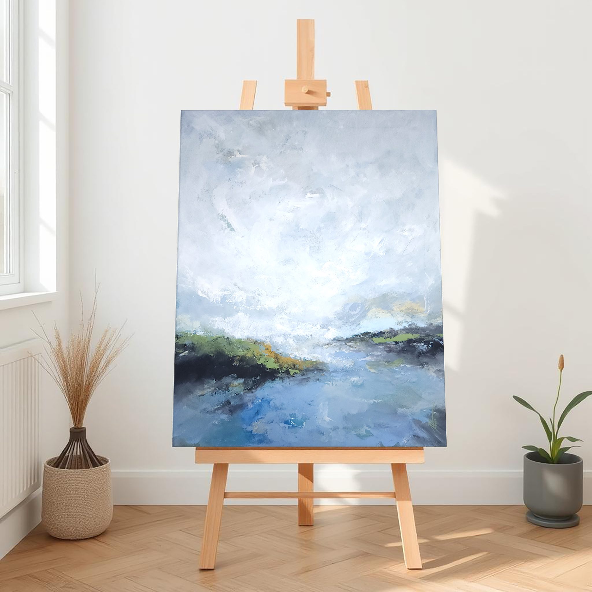 Obraz „Farebné svety XLV“ je maľba v jemnej prírodnej farebnosti v minimalistickom prevedení. Hodí sa do tradičnejších aj moderných interiérov.