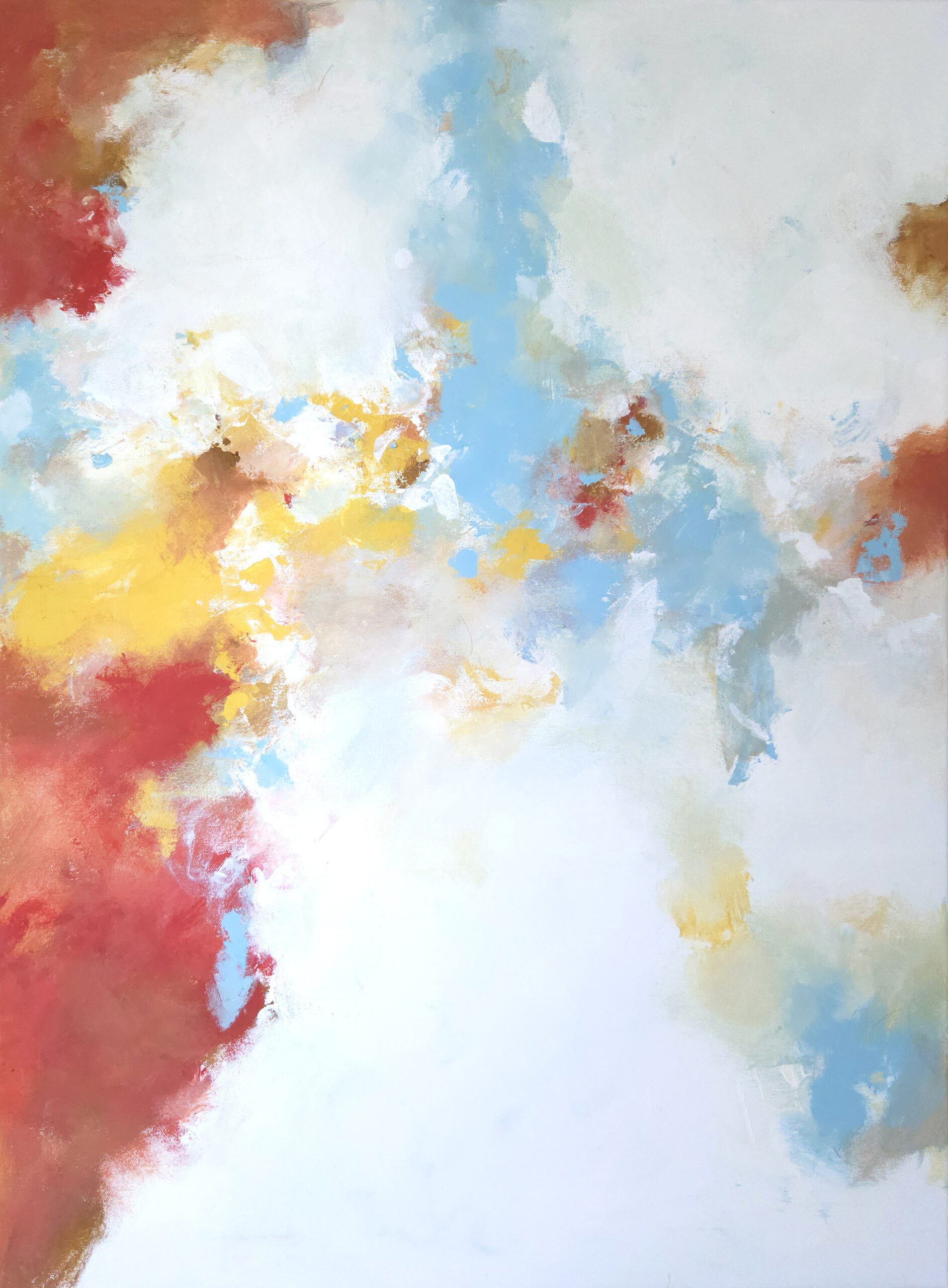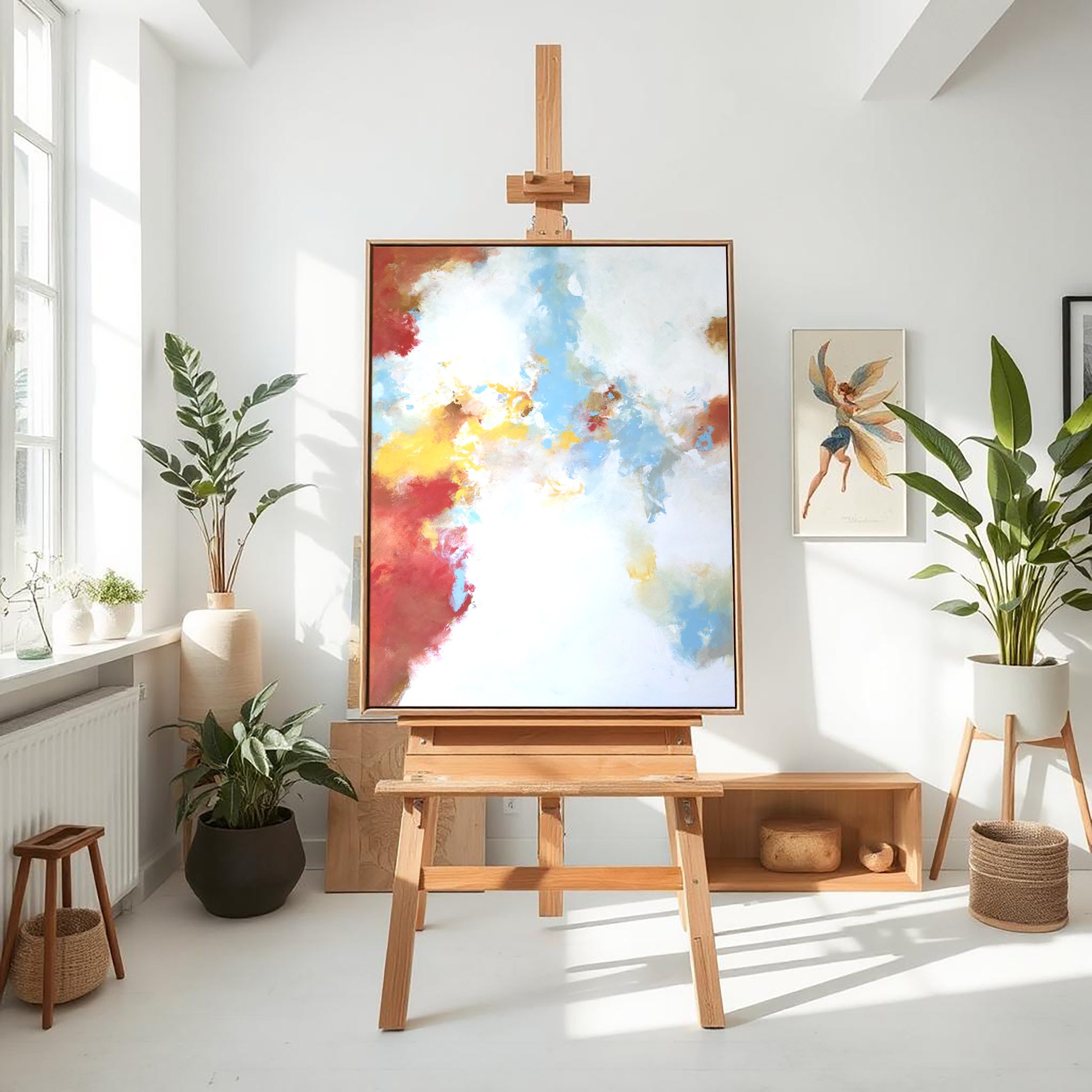 Originálny abstraktný obraz väčších rozmerov vo výraznej farebnosti a vyváženej kompozícii.