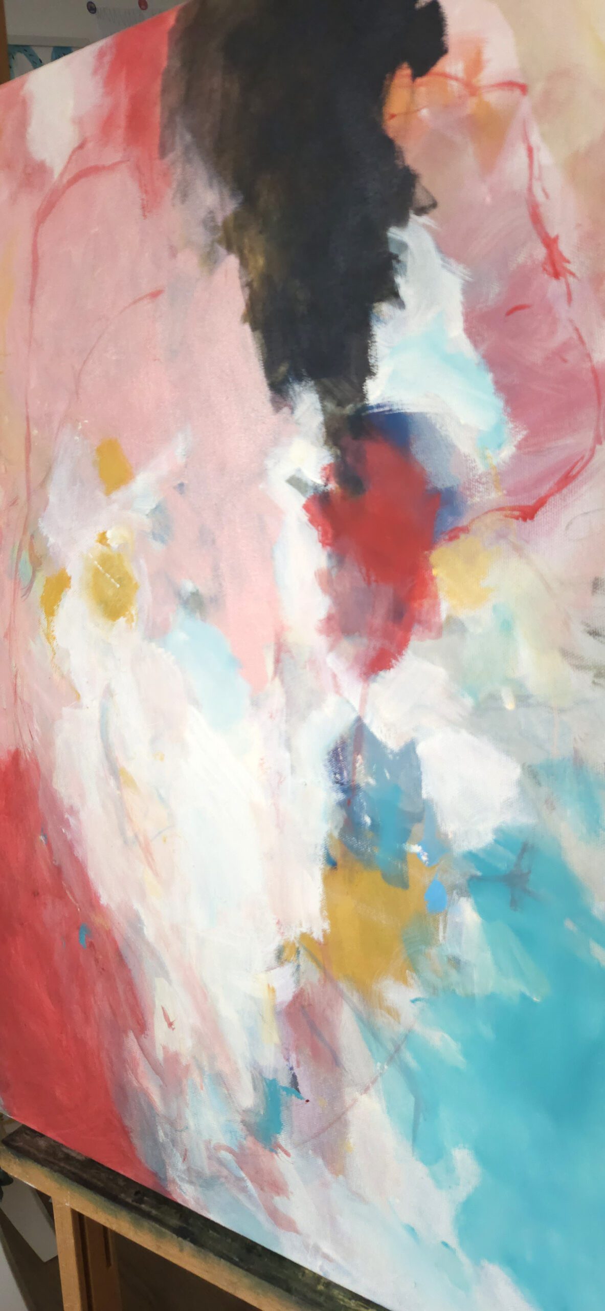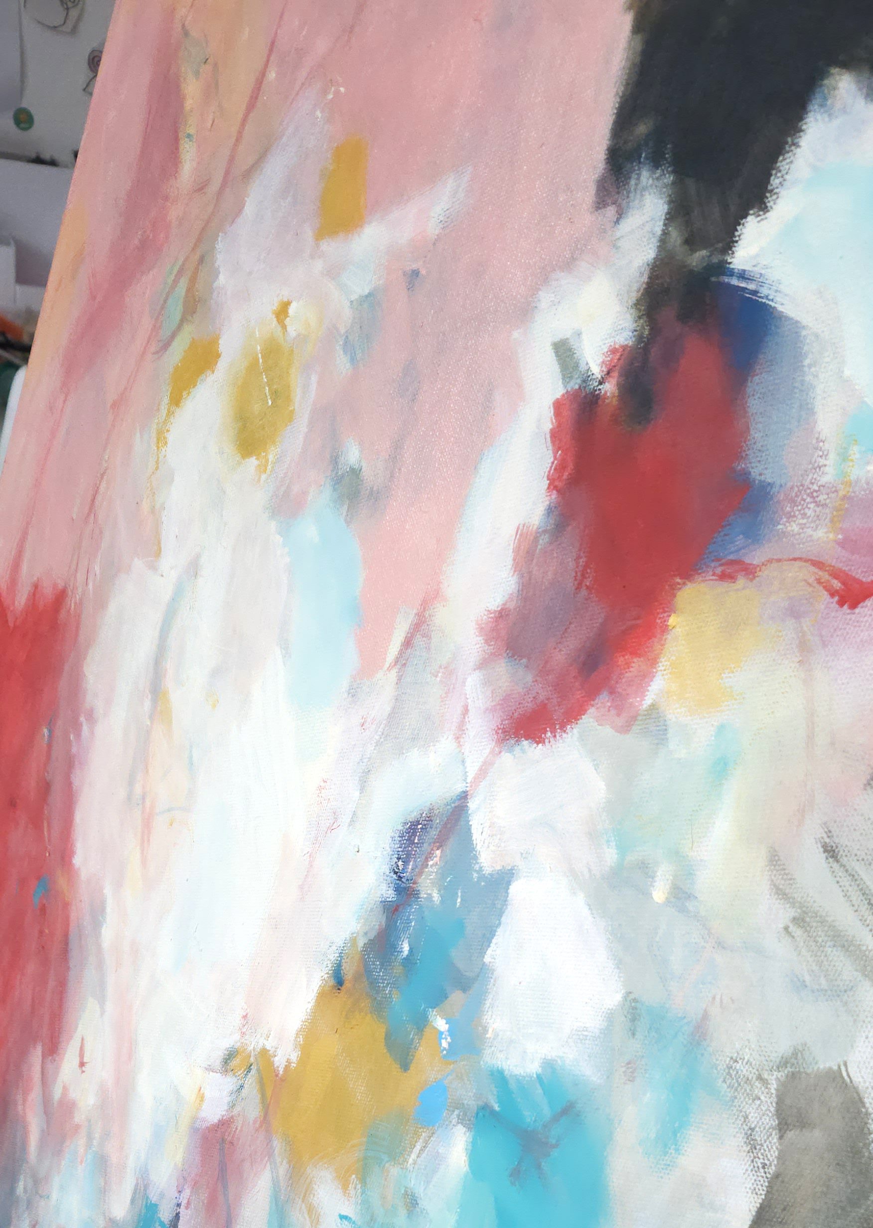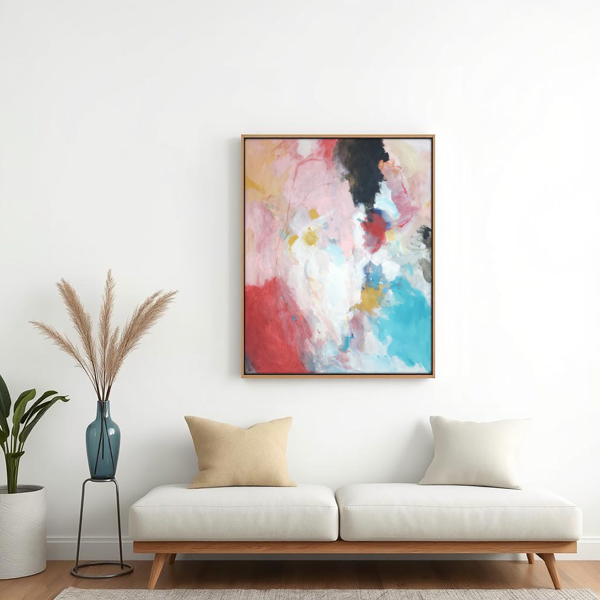 Originálny abstraktný obraz väčších rozmerov vo výraznej farebnosti a vyváženej kompozícii.