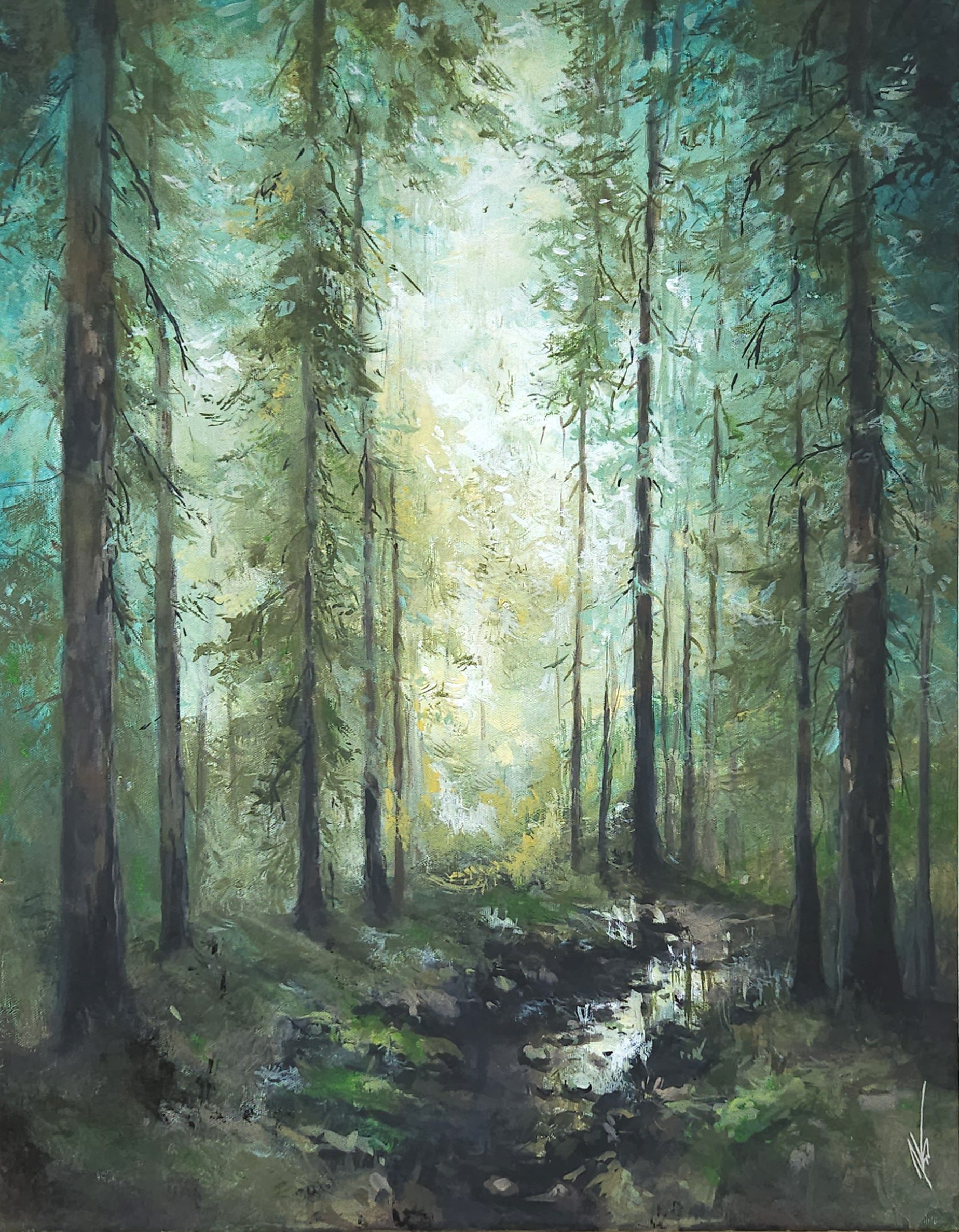 Maľba kvalitnými akrylovými umeleckými farbami na bavlnenom EKO plátne. Obraz posielame s kompletnou technickou úpravou, natiahnutý na blindráme (drevenej konštrukcii) z borovicového dreva.
