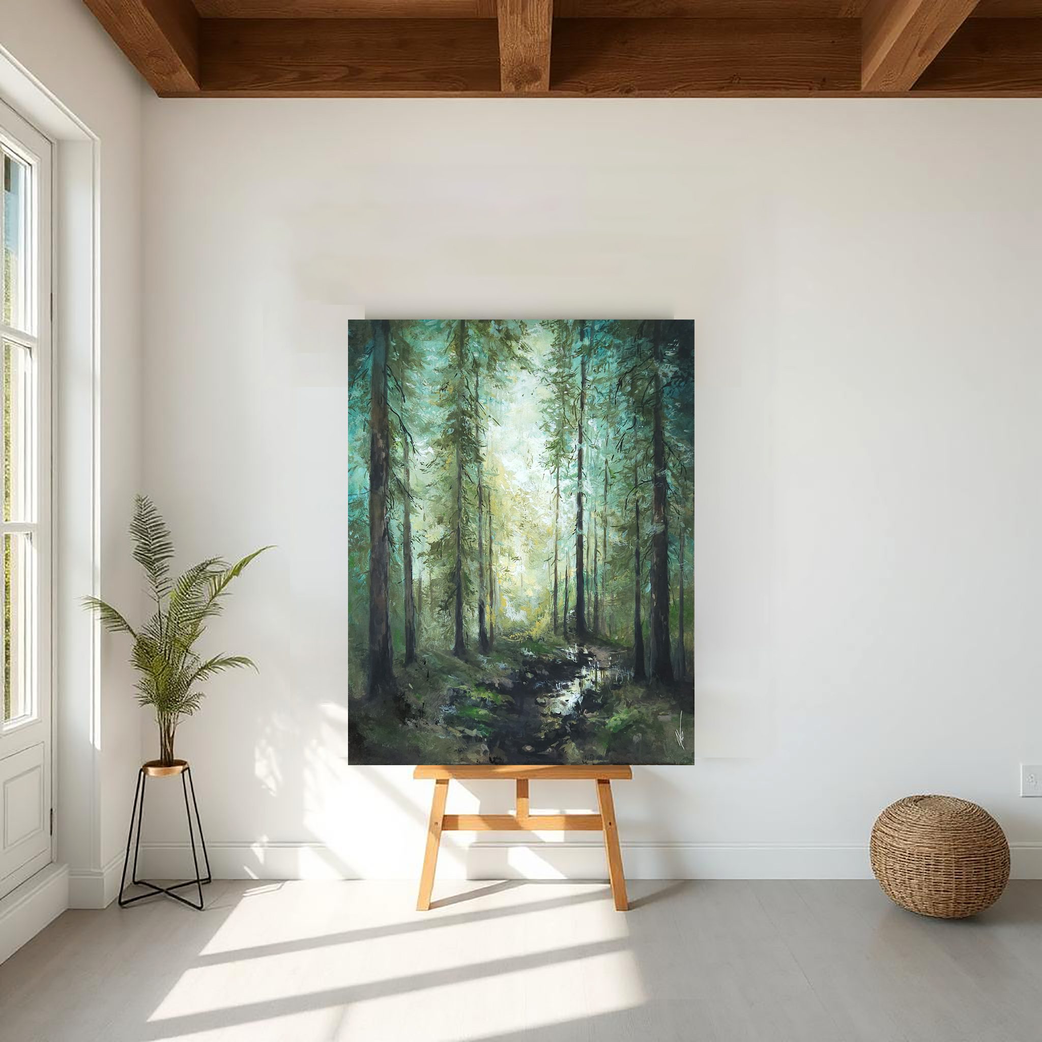 Obraz „Taje lesa XLXI“ je maľba v prírodnej farebnosti v minimalistickom prevedení. Hodí sa do tradičnejších aj moderných interiérov.