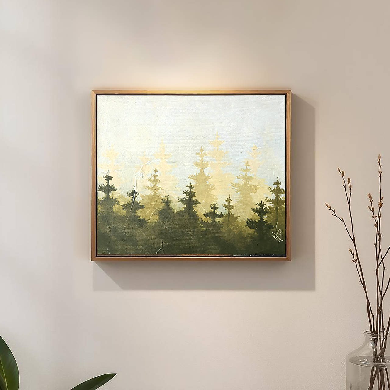 Obraz „Taje lesa XXIX“ je maľba v prírodnej farebnosti v minimalistickom prevedení. Hodí sa do tradičnejších aj moderných interiérov.