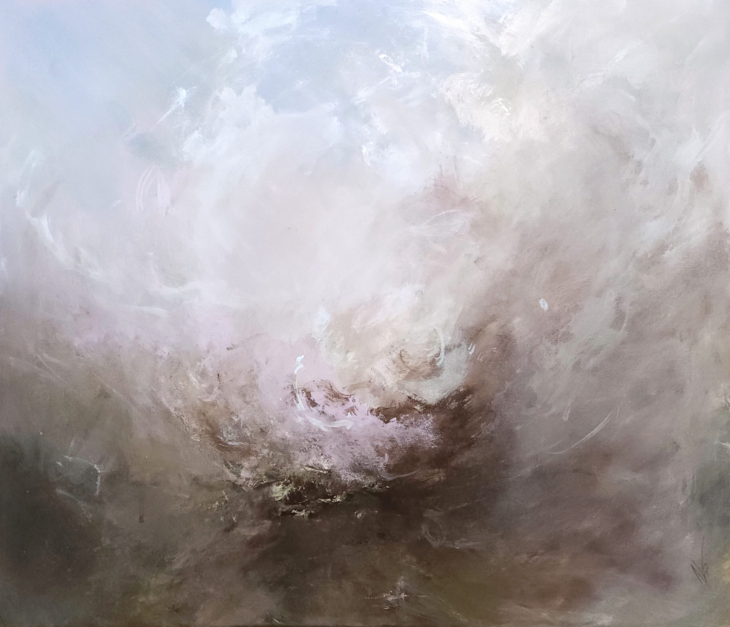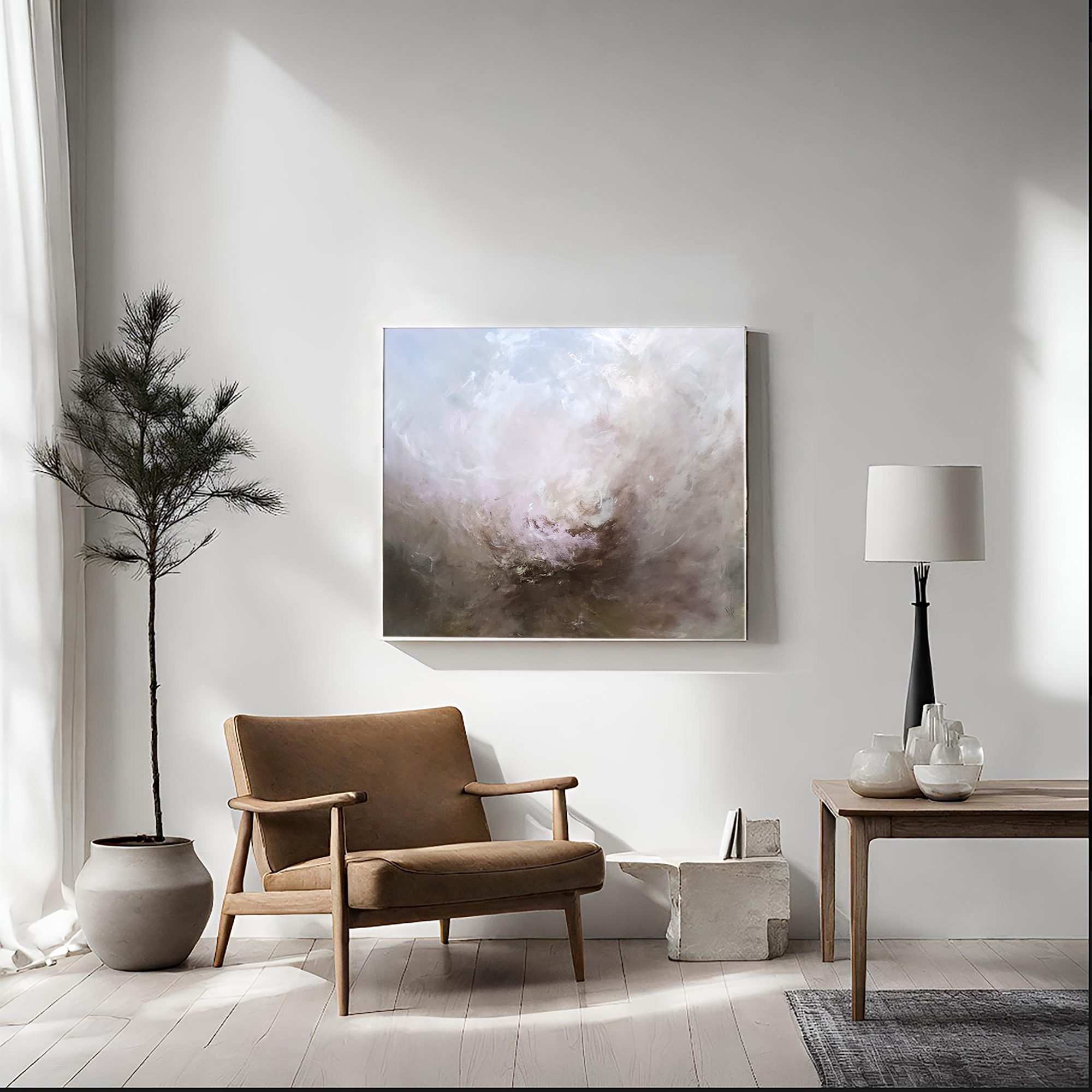 Obraz na pomedzí abstrakcie a krajinomaľby v minimalistickom prevedení.