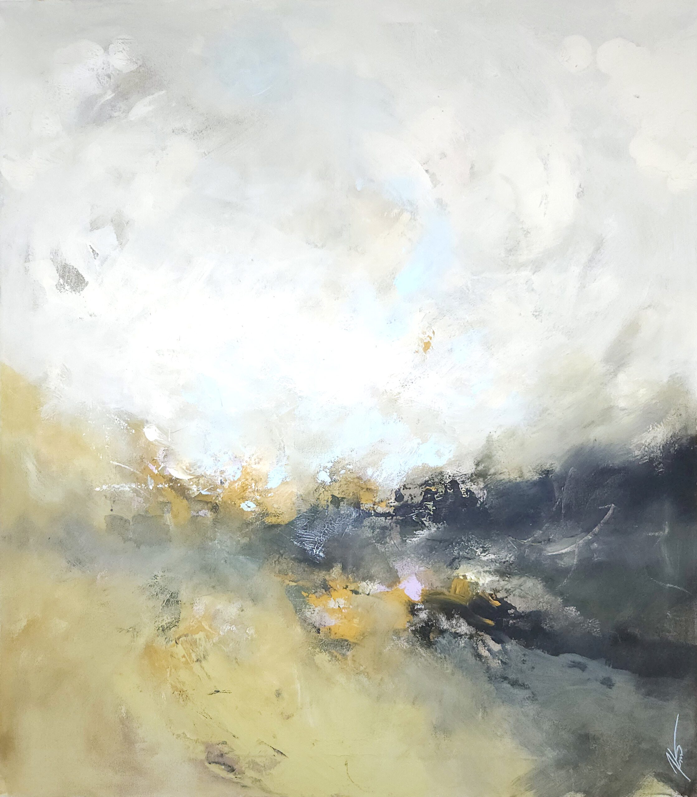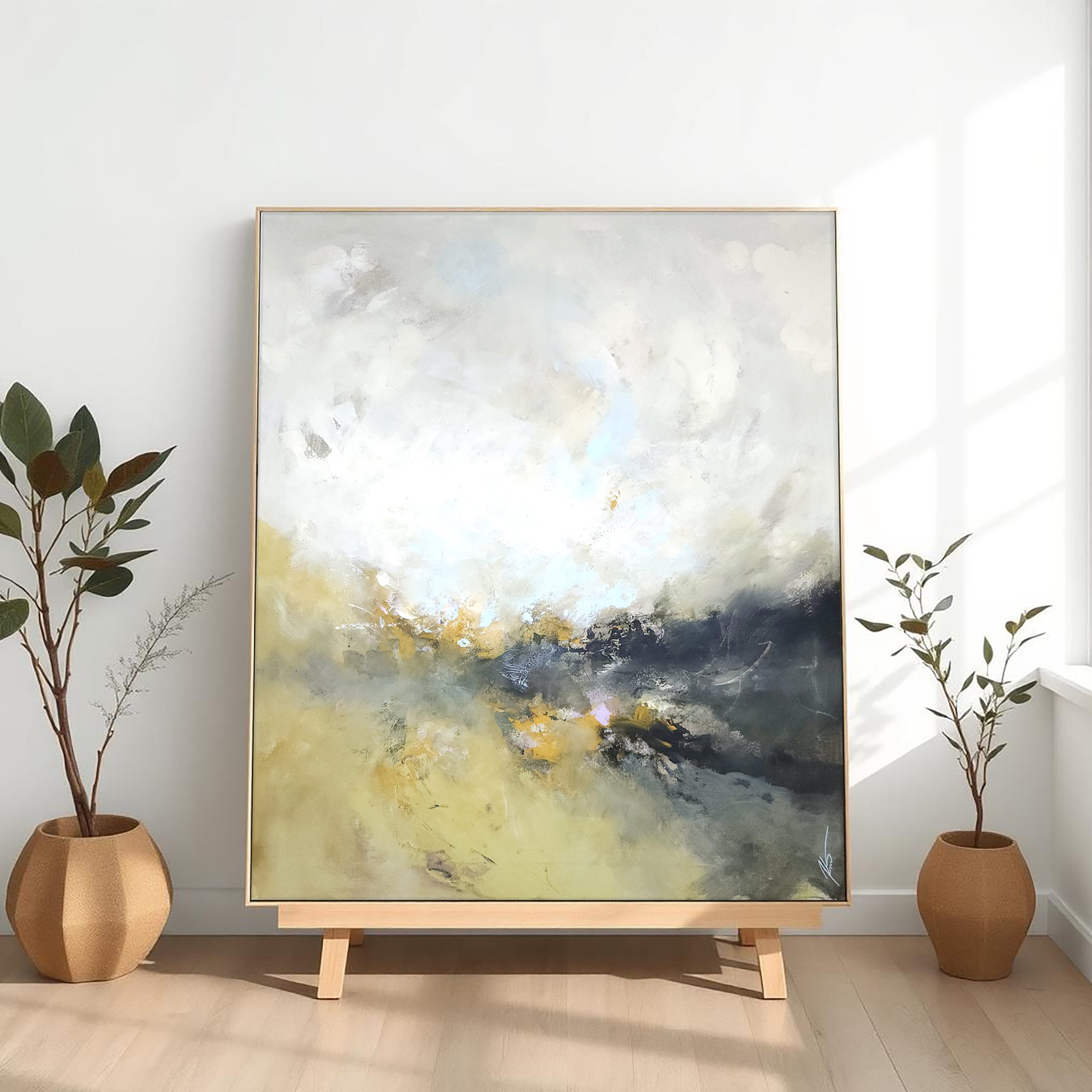 Obraz na pomedzí abstrakcie a krajinomaľby v minimalistickom prevedení.